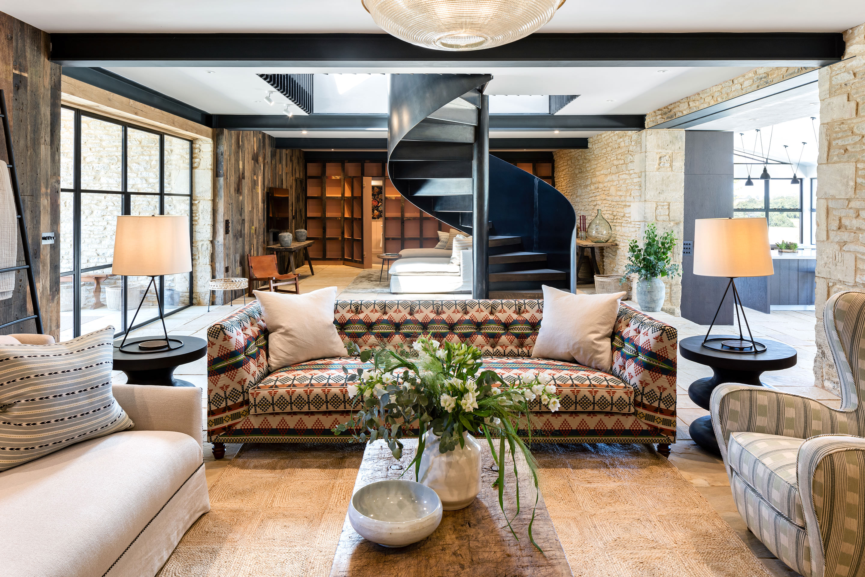 This extensive restoration, part reconstruction and conversion of a former derelict barn and cattle shed – on an enviable hilltop location in the Cotswolds – resulted in a stunning, six-bedroom, countryside getaway.